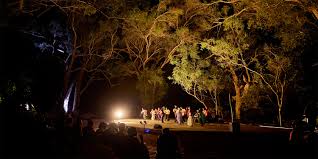 The natural environment amplifies the experience. Surrounded by towering trees beneath a canopy of stars, the audience sits informally on picnic blankets, hay bales, and low chairs, choosing their own vantage point. As night deepens, voices echo across the hills, dissolving the distance between stage and spectator.